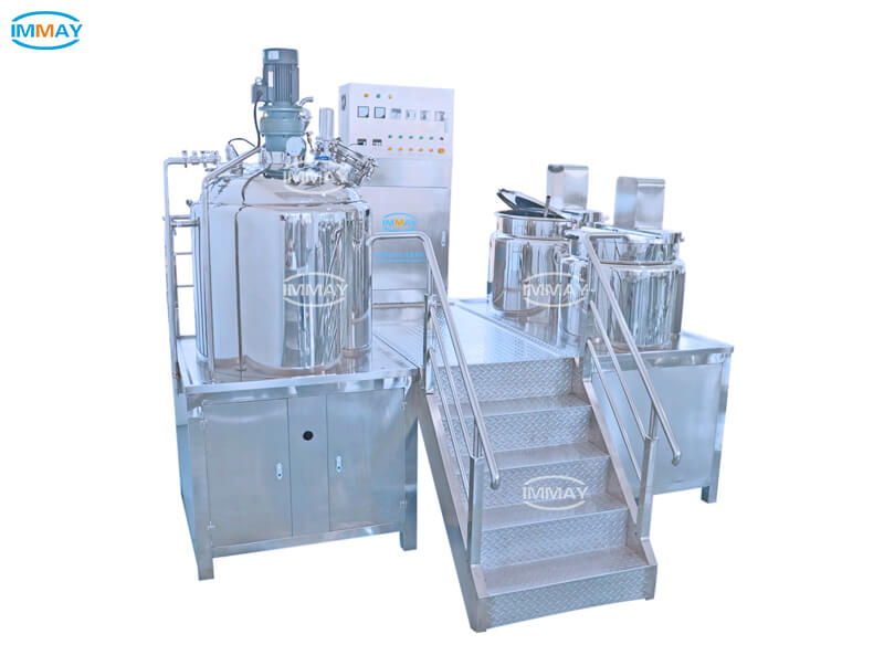 IMMAY’s vacuum emulsifying mixing machines are designed for these requirements. They integrate high shear homogenizer, frame wall-scraping agitators, and vacuum pump, allowing efficient particle wetting without over-shearing. The vacuum system minimizes air entrapment, ensuring reproducible viscosity, clarity, and texture across gels, creams, and serums at industrial scale.